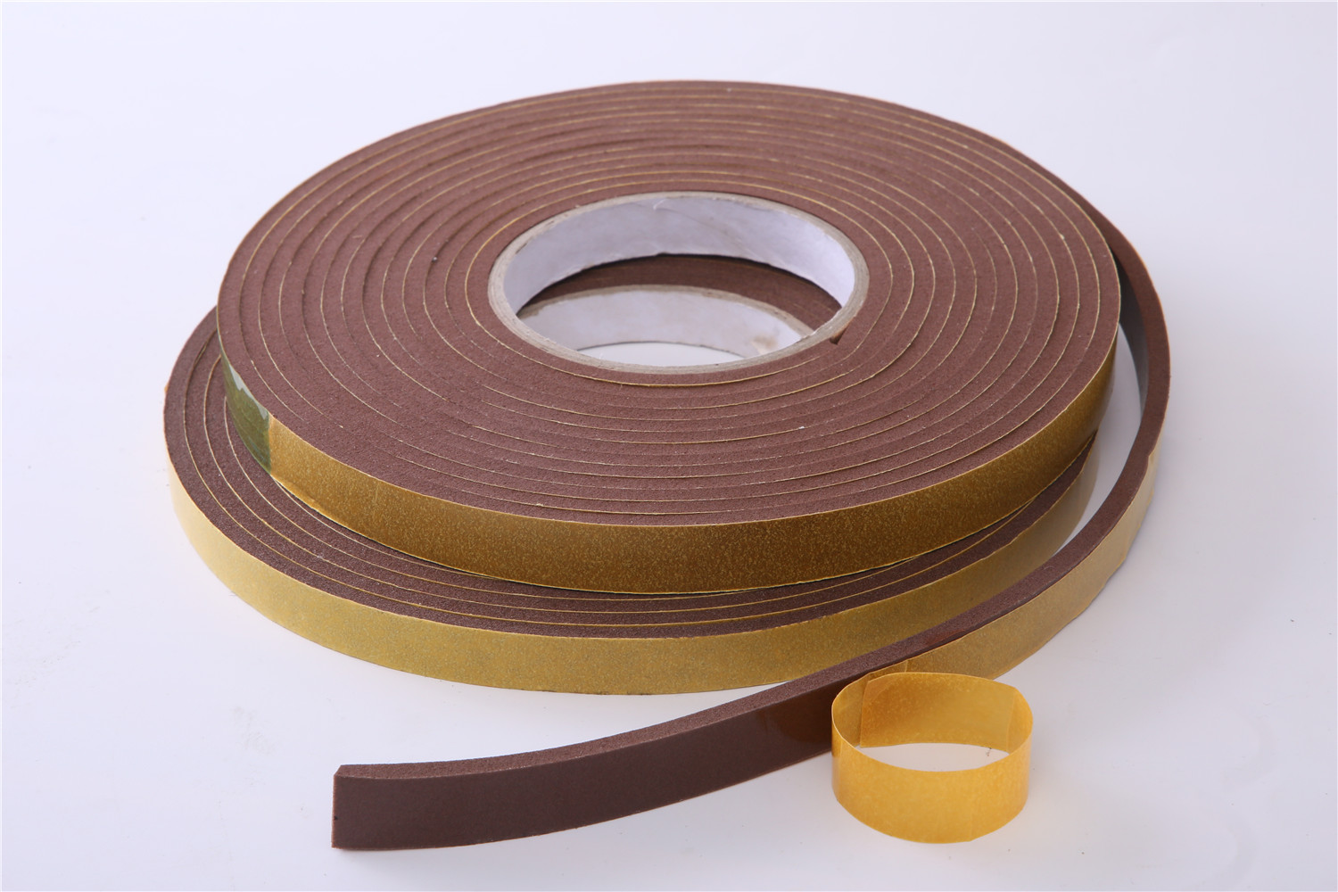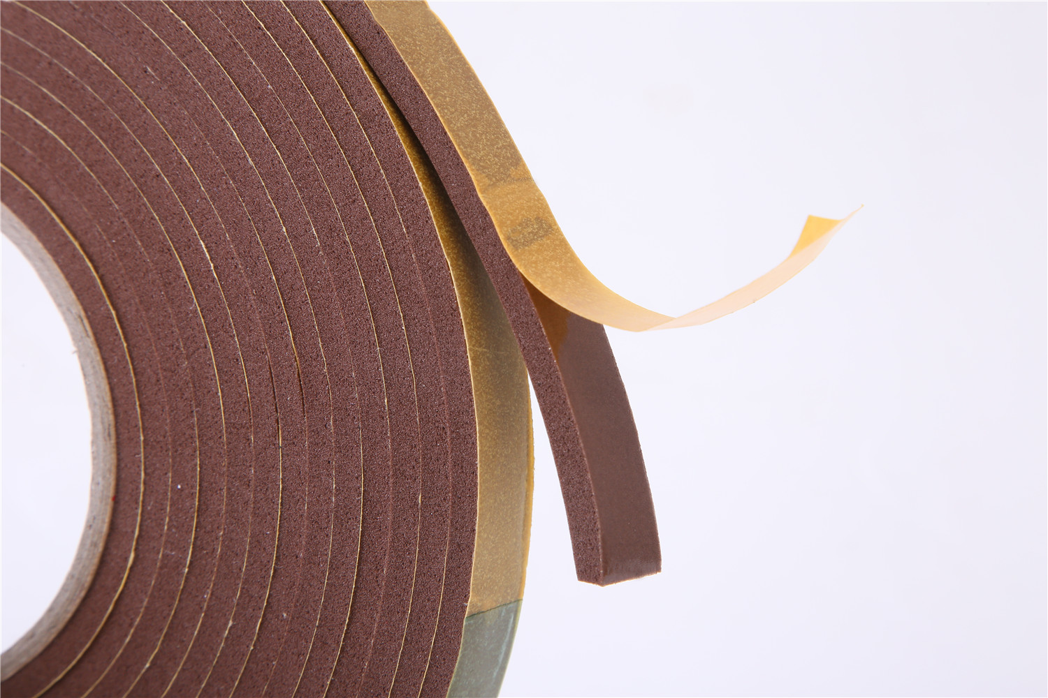 Brown PVC foam tape is s made by 300-400kg density PVC foam. The foam sealant combines a closed-cell polyvinyl chloride foam substrate with a pressure-sensitive adhesive on both sides.