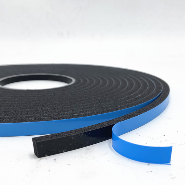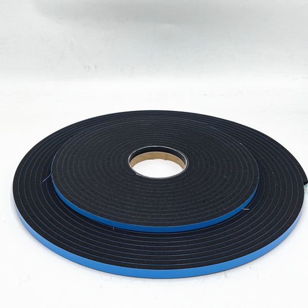High density double-sided blue film PVC foam tape of Polyvinyl Chloride plastic as the main raw material, through high temperature mixing, adding foaming agent, auxiliary agent and other raw materials to make the independent closed-hole foaming material.The foam sealant combines a closed-cell polyvinyl chloride foam substrate with a pressure-sensitive adhesive on both sides.The appearance is smooth,the bubble hole structure is more subtle, press back to play slowly. It has the excellent properties of toughness, heat insulation, sound insulation, high resistance to corrosion, good resilience, small absorption of water, conductive or antistatic.Sanhe foam performance in the window glazing market has made it the good choice in a kind of glazing applications.