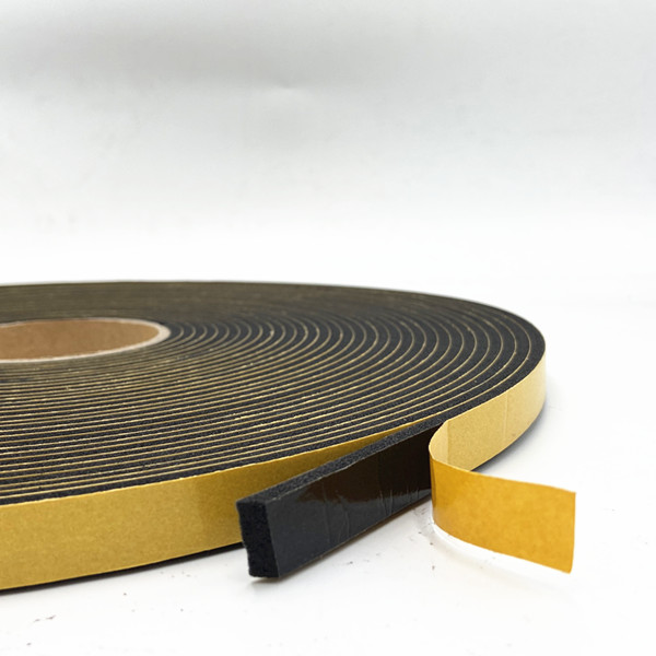 High-density double-sided PVC foam tape is made by 300-400kg/m3 density PVC foam. The foam sealant combines a closed-cell polyvinyl chloride foam substrate with a pressure-sensitive adhesive on both sides.
